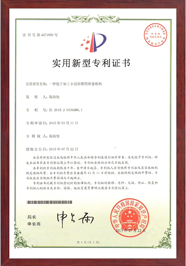 一種便于加工小直徑錐筒的卷板機專利